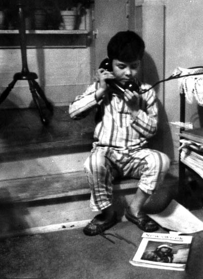 - Homer "Sonny" Hickam, Jr., talks to his dad on the coal mine black phone, 1948.