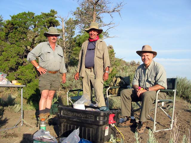 - Frank, Bill, and Homer after a day of dinosaur-hunting near Hell Creek, Montana.